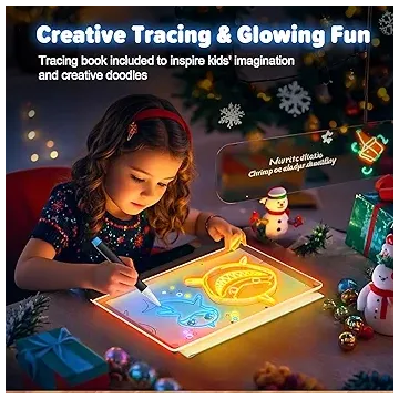 16-Inch Rechargeable Doodle Glow LED Note Board, 7-Color Light Modes, Neon Art Dry Erase Light Up Drawing Pad with Built-in Stand, Sketching Gift Toy for Kids/Girls/Teens, 5 Markers & Tracing Book